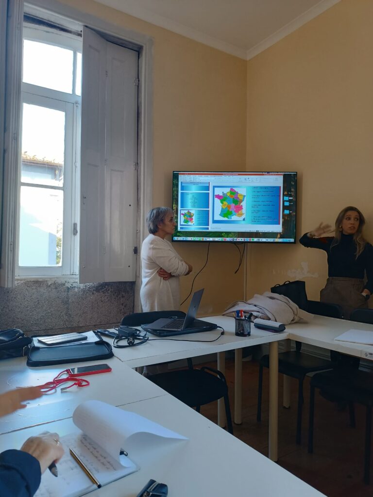 As alunas apresentaram os resultados das suas pesquisas, partilhando pratos típicos, curiosidades culinárias e tradições locais, numa verdadeira viagem pelos sabores de França. Esta viagem gastronómica foi escolhida pelas alunas para futura partilha com os participantes estrangeiros na próxima workshop internacional, dando assim o seu contributo para a partilha cultural.