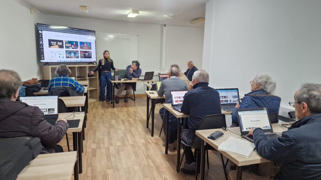 Realizou-se, na aula de Internet e Multimédia da Universidade Sénior, mais um workshop dedicado ao desenvolvimento de competências digitais e à transferência intercultural, no qual os alunos assumiram um papel verdadeiramente protagonista em todo o processo.